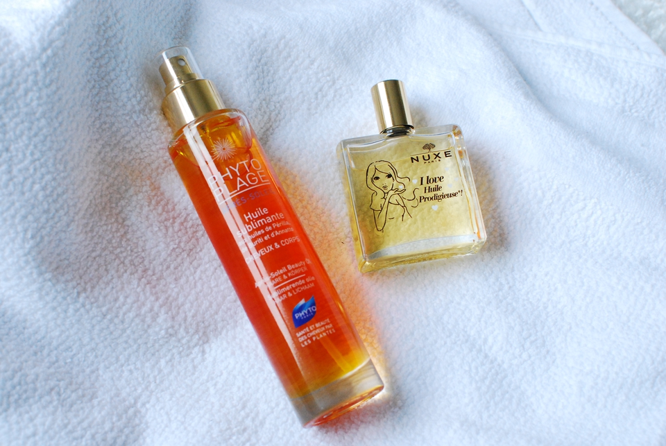 Já vos falei dos afamados óleos da Caudalie ou Lierac mas hoje, e para esta categoria porque é o que ando a usar, trago-vos o nuxe huile prodigieuse (*) que dispensa apresentações e ao qual gabo a qualidade. No corpo, é usar à vontade, já no cabelo, prefiro-o como tratamento pré-lavagem e no rosto, descobri-lhe recentemente uma forma interessante de se usar. A mesma foi partilhada aqui e consiste em juntar duas ou três gotas deste óleo a um creme, e fazer uma espécie de máscara, que deve depois ser retirada. Assim, consigo usufruir dos seus benefícios, sem me pesar na pele. [E por falar em nuxe, a marca está com umas ofertas -pulseiras, velas, óleos e perfumes - bem jeitosas na sweetcare, na compra de produto da marca! Espreitem aqui]