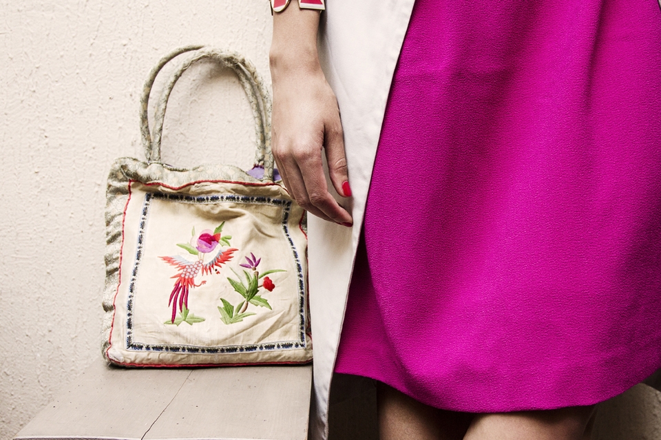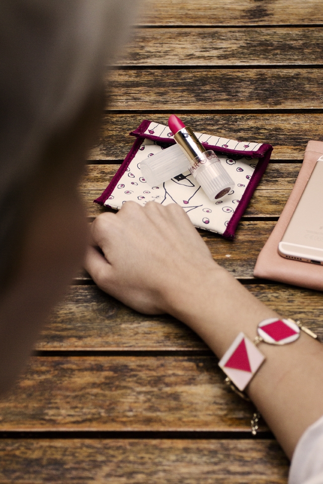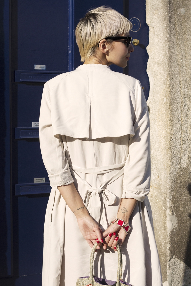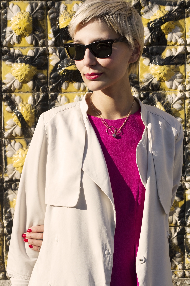 Trench coat, Colares e Vestido  H&M      Batom  Collistar (COLLEZIONE TI AMO ITALIA di Antonio Marras (53 Rosa Murano)     Óculos  Ray Ban (Wayfarer)     Pulseira  Parfois   Verniz  Andreia (43)     Carteira  Zara     Sapatos  EHYA (comprados numa sapataria antiga em Braga)