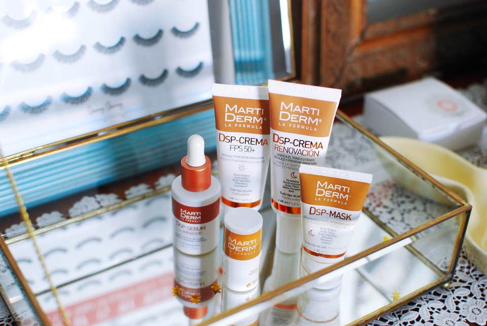 Posto isto, tenho presente essa preocupação na hora de escolher os produtos das minhas rotinas, tentando sempre incluir produtos específicos para as manchas. Logo, quando a martiderm lançou a DSP, deitei a mão à DSP- Mask (podem reler o post aqui). Já sabem que máscaras são sempre algo que uso de forma compulsiva, e este tratamento intensivo nocturno com uma acção despigmentante pareceu-me ser coisa da boa e da potente! E não me enganei! Comecei a usar e sente-se, de forma imediata, a acção da máscara, sendo que, por ter pele com rosácea, me deixou algo apreensiva e me levou a suspender o tratamento pela altura do verão e quando comecei a usar outros produtos para o efeito.