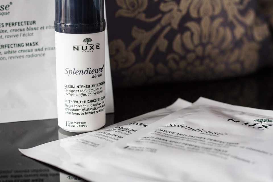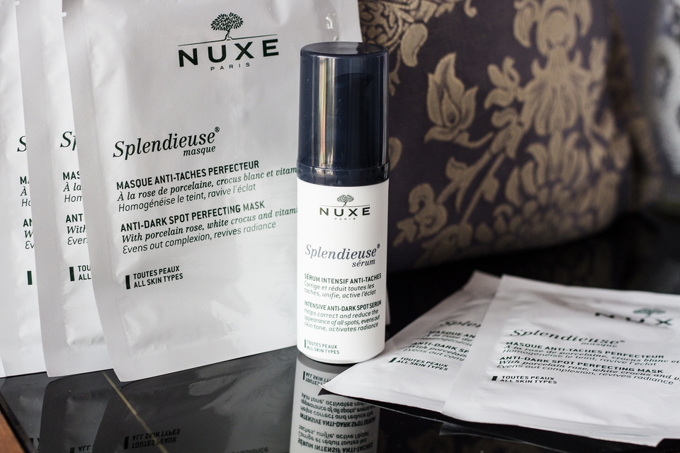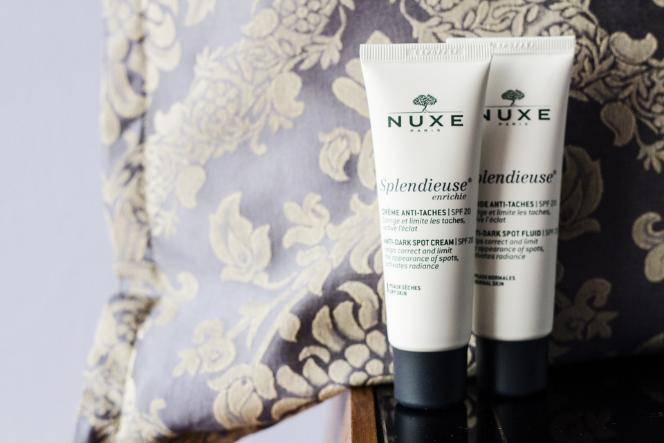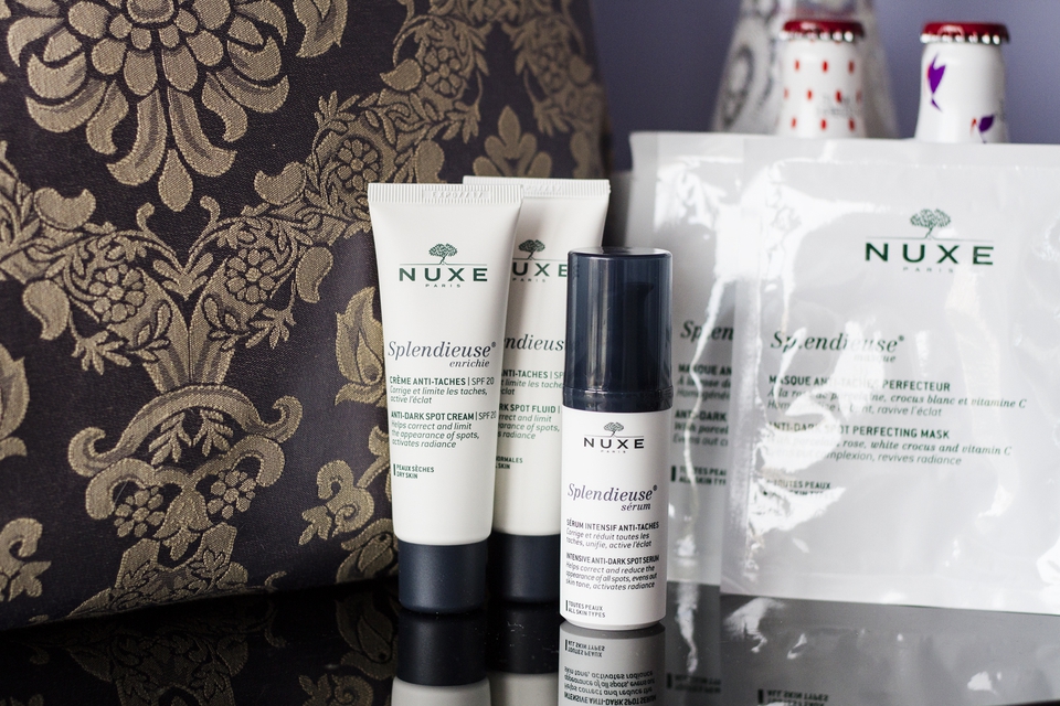 Vai daí, quando me chegaram a casa os produtos da nuxe da gama Splendieuse (*) para testar, não pude deixar de achar que vierem em hora boa, já que esta linha foi criada para peles com manchas (de idade, imperfeições, sol, etc.), macilentas, acinzentadas, sem brilho e de aspecto pouco saudável. Segundo a marca, o Lírio Branco e Açafrão Branco, inibem e abrandam a produção de melanina, ou seja, não só tratam a mancha, como evitam que apareçam mais.
