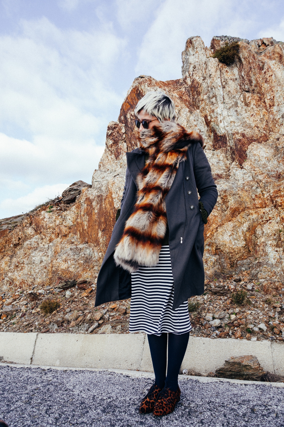 Sunnies asos (Dinis`) Coat, Sweater, Dress and Shoes Zara Fur wrap Absolutribut Rings&Bag Parfois