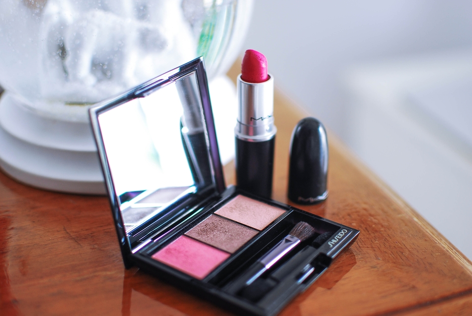 Nem toda a gente aguenta esta fórmula, mas sem dúvida que é dos meus acabamentos preferidos já para não falar no rosa rico e vivaço que ilumina qualquer tez cinzenta e triste. A melhor forma de combinar um batom deste calibre, é mesmo desleixar a cor dos olhos mas com muita máscara de pestanas ou então, apostar em cores neutras ou, mais uma vez, da mesma família. Daí que, o resolvi emparelhar com esta paleta da Shiseido, recheada com rosas delicados e malva (que comprei a pensar na mãe de uma noiva que tive e ficou linda) pois parece-me ser uma combinação deliciosa e muito feminina.