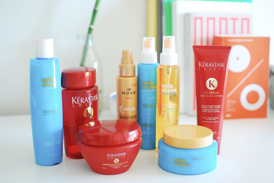 Para lavar e tratar, a Kérastase continua a merecer uma das medalhas de melhores produtos capilares, para mim, e no verão, volto sempre a esta tripla da gama SOLEIL. Para lavar, o Bain Aprés Soleil para cabelos pintados (*) é um champô em gel transparente, leve e que deixa o cabelo muito macio cuja acção é depois reforçada com a aplicação da Máscara UV Defense (*), que é fabulosa. Cheira bem, reforça e nutre a fibra capilar, e deixa o cabelo super solto e macio.